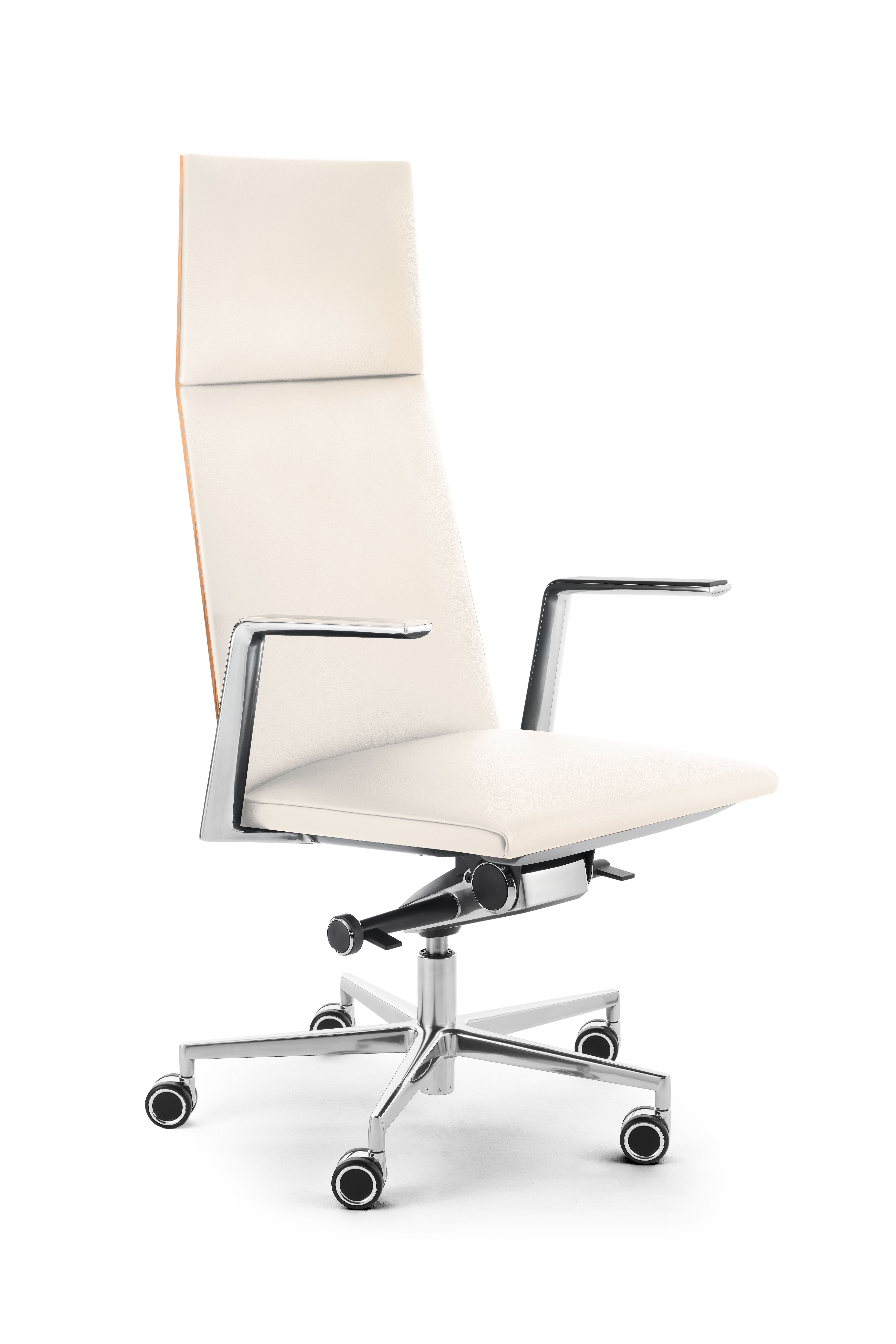 hoher Sitzkomfort durch Polsterkissen . klassisch elegant durch verjüngende Lehnenform . dynamisch wirkende Armlehnen, massives Alu poliert . Fußkreuz Alu poliert . kombinierbar durch verschiedene Lehnenhöhen . verchromte Details in Rollen, Gleitern und Mechanik . arretierbare Synchronmechanik incl. Sicherheitssperre, gewichtsabhängig regulierbar, höhenverstellbar . Rollen mit universell einsetzbaren Softrädern